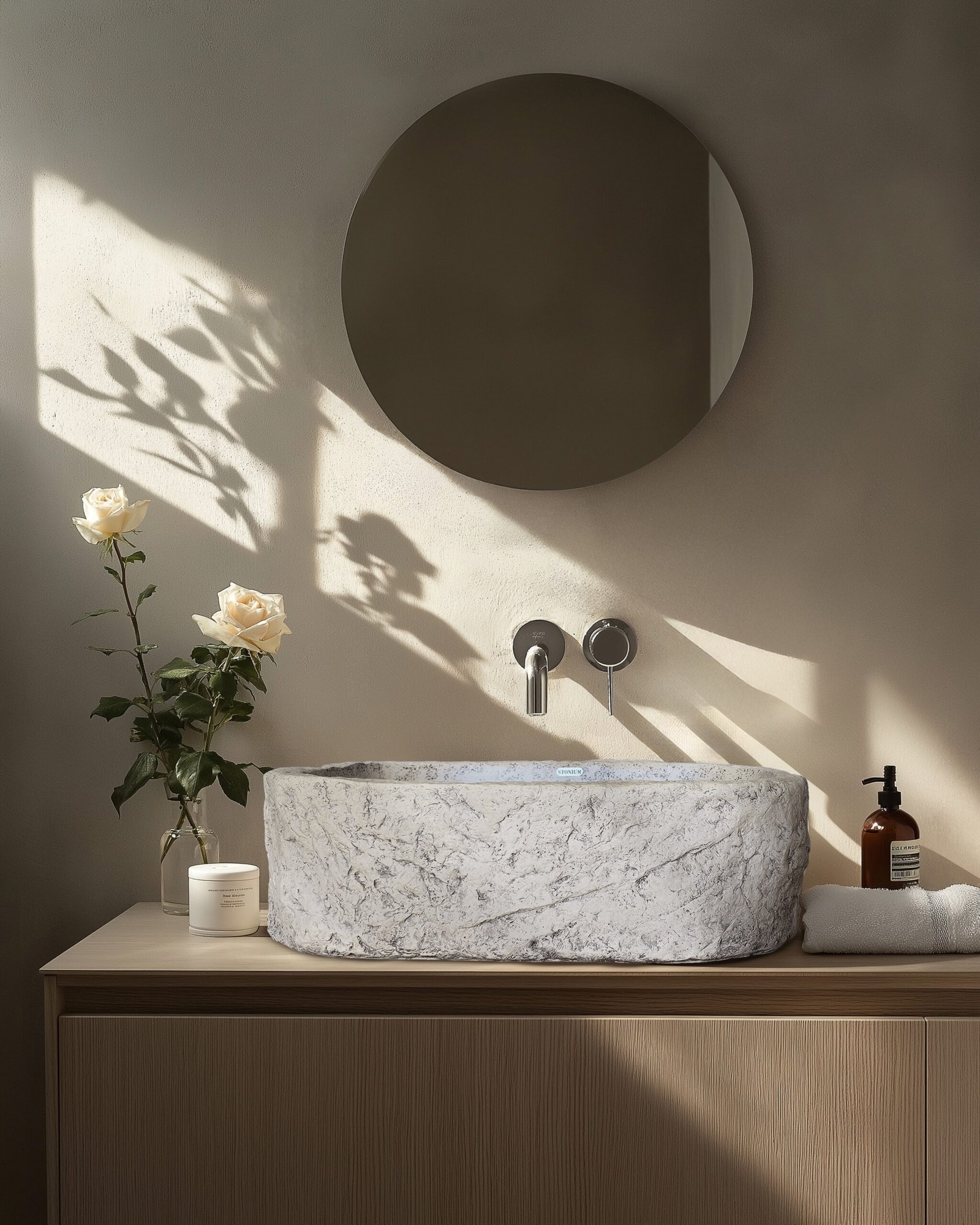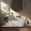 More than just a striking form, Orion offers structure and balance in spaces where material integrity is central to the design. Its defined outer edges lend a sense of architectural order, while the inner basin remains soft and smooth, providing comfort in daily use. This balance between strength and subtlety makes Orion ideal for organic-inspired homes, wellness- focused environments, or boutique interiors where texture tells a story and each element carries intention.